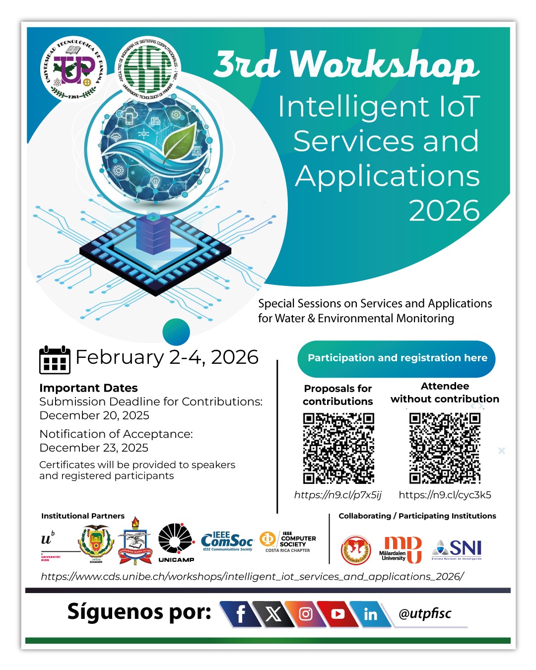 This third edition highlights Special Sessions on Services and Applications for Water and Environmental Monitoring, building on results from the Fog2 initiative and the workshops held in 2023 and 2025 at the Universidad Tecnológica de Panama. The 2026 hybrid event will bring together an international community from Europe and Latin America, connecting universities, small and medium-sized enterprises, public agencies, and user groups to showcase project results and follow-on activities and to explore new application areas that combine the IoT with ML and AI. The workshop aims to broaden participation beyond academia and translate contributions into real-world impact by emphasizing practical implementations, interoperability, and reproducibility.